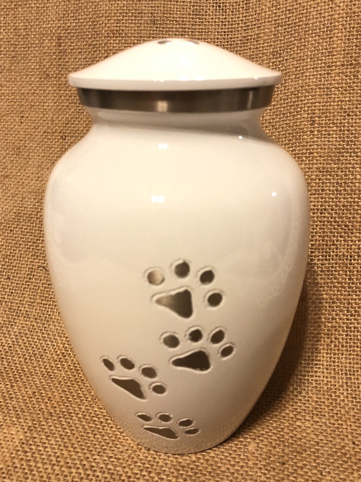 White Urn w/ Paws